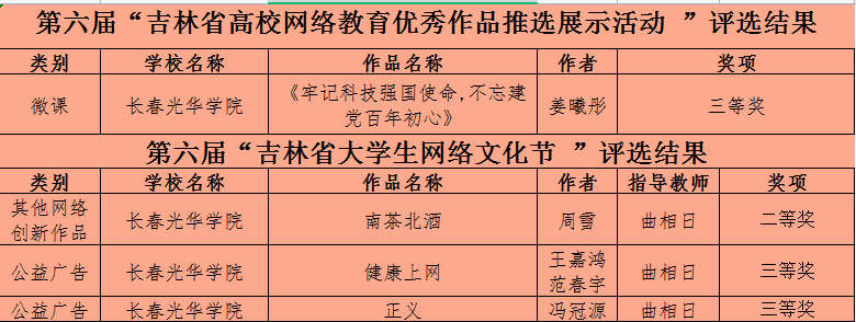 近日,吉林省教育厅公布了第六届“吉林省大学生网络文化节”和“高校网络教育优秀作品推选展示活动”遴选结果。pg娱乐电子游戏官网入口共有4个作品获奖,其中二等奖1项、三等奖3项。