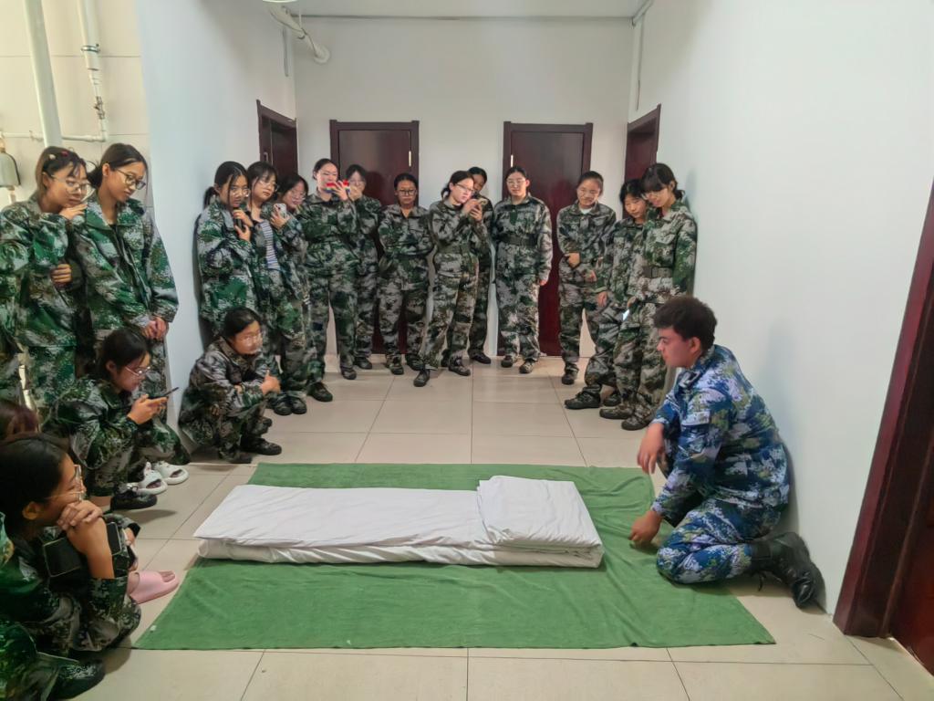 学军人之风采,强自身之素质。军训不仅仅包括军姿、行进等训练项目,内务整理也是军训过程中的重要一课。宿舍作为同学们校园生活的重要场所之一,反映着同学们的日常生活习惯及态度。训练场上磨炼的是坚毅的品质,内务整理锻炼的是自律的意识,方方正正的“豆腐块”是同学们认真、严谨对待军训的最好证明。