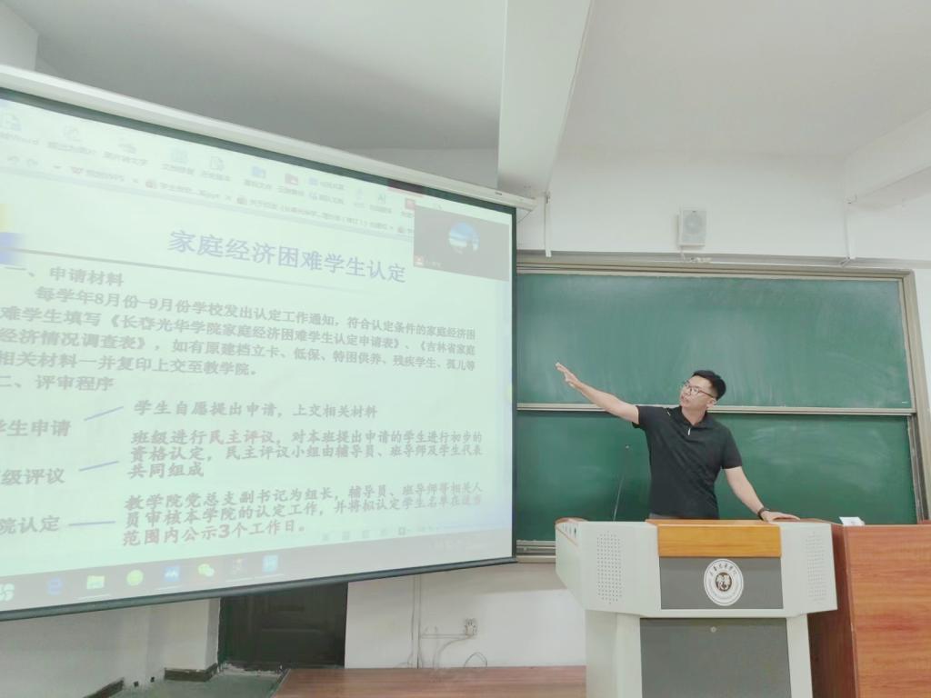 为进一步推进国家资助政策宣传工作,加大学生资助政策宣传力度,引导2023级新同学们深入了解相关资助政策,2023年9月18日,pg娱乐电子游戏官网入口开展奖助贷政策解读及贫困生认定专题讲座,本次讲座由pg娱乐电子游戏官网入口辅导员孙淳浩主讲,2023级全体学生参加。