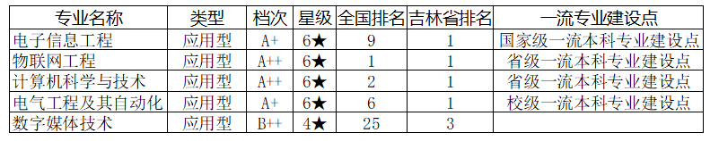 pg娱乐电子游戏官网入口目前有国家级一流本科专业建设点1个(电子信息工程专业),省级一流本科专业建设点2个(物联网工程专业和计算机科学与技术专业),校级一流本科专业建设点1个(电气工程及其自动化专业),吉林省卓越工程师教育培养计划2.0专业2个(电子信息工程专业和物联网工程专业)。在校友会网2024年中国大学一流专业排名中各专业又有所进步,再创新高。