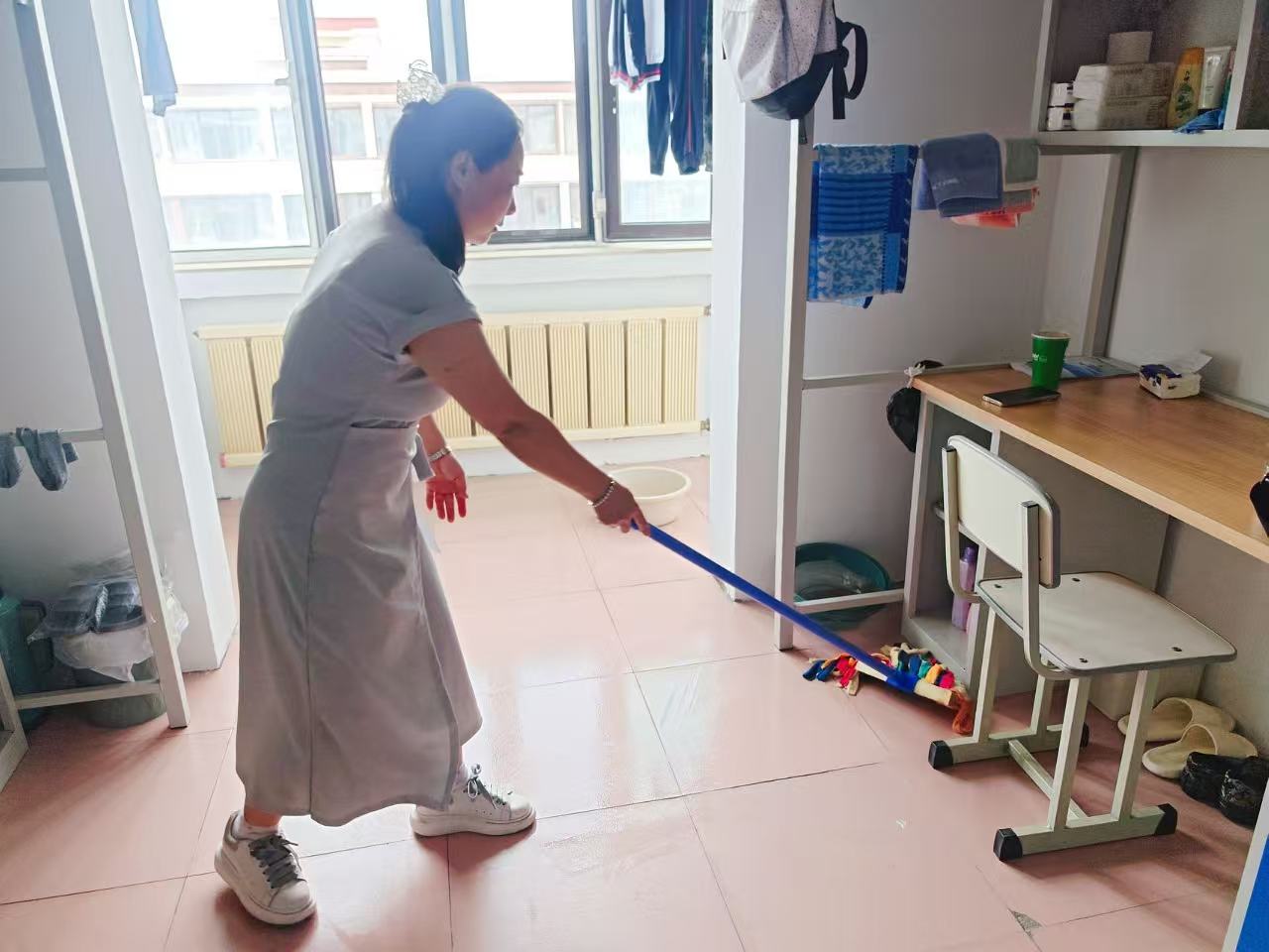 爸爸们默默扛起扫帚