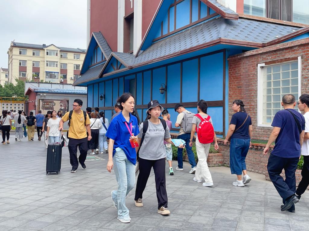 志愿者引领新生驻足观看