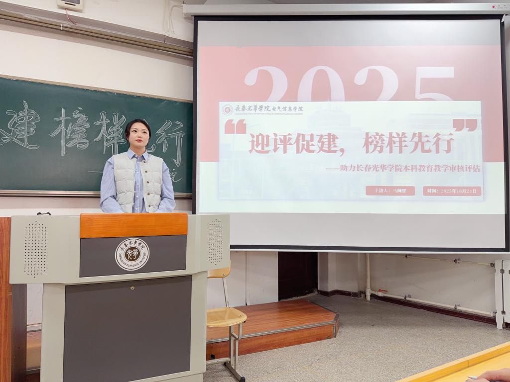 会上,马闽营老师围绕四个核心方面进行了深入讲解与动员:一是“深刻认识:本科教育教学审核评估的重要意义”,引导同学们从学校发展全局的高度理解评估工作的关键性;二是“担当作为:学生骨干在迎评促建中的责任定位与行动表率”,明确了学生骨干在评估工作中的角色与使命;三是“凝心聚力:总结展望与要求落实”,对前期工作进行总结并对后续具体落实提出明确要求;四是“凝心聚力:迎评行动号召”,发出了积极参与评估的响亮号召。