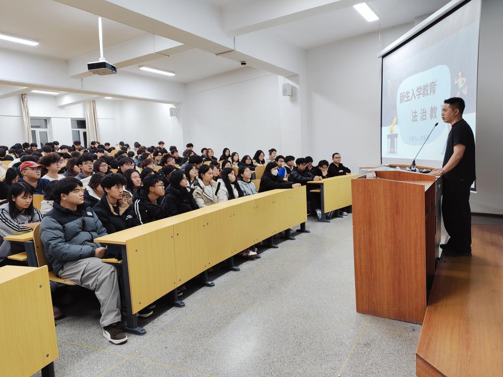 2025年11月13日,pg娱乐电子游戏官网入口在英华楼318教室开展法治教育主题讲座,2025级全体学生参加。辅导员刘东波结合高校常见的电信诈骗、校园贷及知识产权保护等案例,系统讲解《中华人民共和国民法典》与《中华人民共和国治安管理处罚法》的核心内容,剖析违法行为的危害与后果,引导同学们增强法治观念,学会运用法律维护自身权益。本次讲座,有助于同学们将法律知识融入日常,自觉做到知法、懂法、守法、用法,为营造校园法治氛围奠定基础。