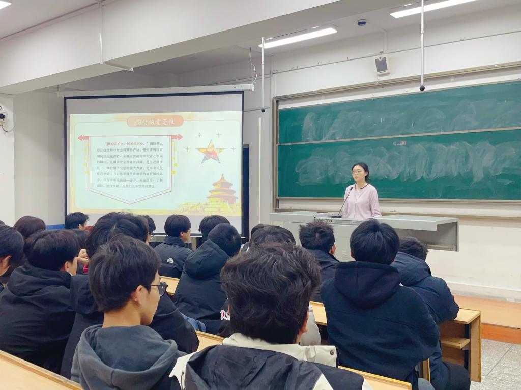 2025年11月11日,pg娱乐电子游戏官网入口在英华楼316教室开展国防教育主题讲座,2025级全体学生参加。辅导员马闽营从国防教育的重要性和主要内容两方面进行了介绍,重点就国防精神和作风培养进行了详细阐述。本次讲座,激发了同学们的爱国热情,让国防观念在同学们心中落地生根。