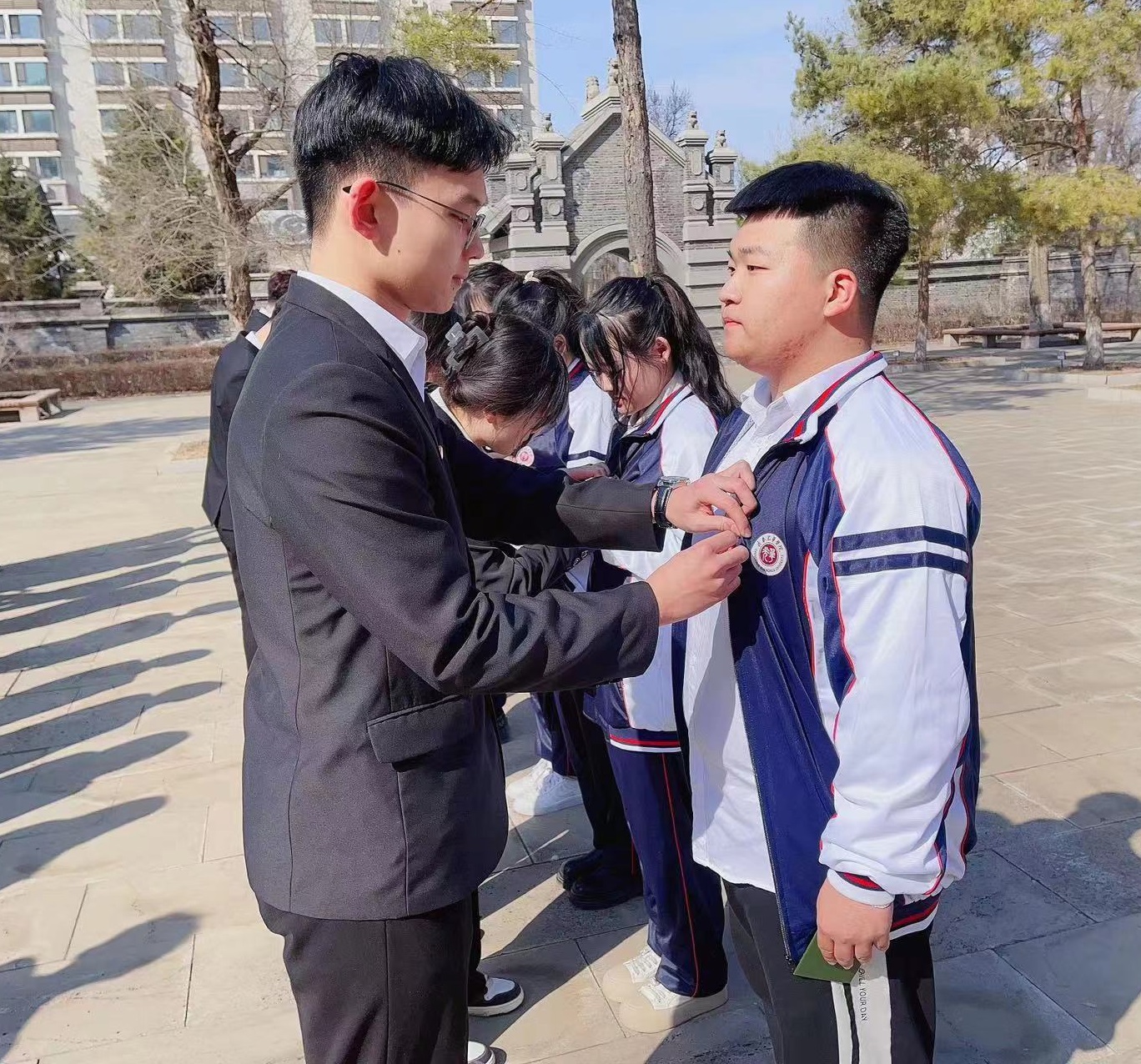 入团仪式在庄严的国歌声中拉开序幕,全体同学着装整齐、精神振奋、昂首挺胸,满腔的爱国情怀在嘹亮国歌声中激荡。接下来,团总支书记曲相日宣读了新团员名单后,团员青年代表为新团员们颁发团员证、佩戴团徽,从这一刻起,每一位新团员将明确自己肩负的责任和时代赋予的使命,努力争做一名有理想、有朝气、热情昂扬的新时期团员青年。