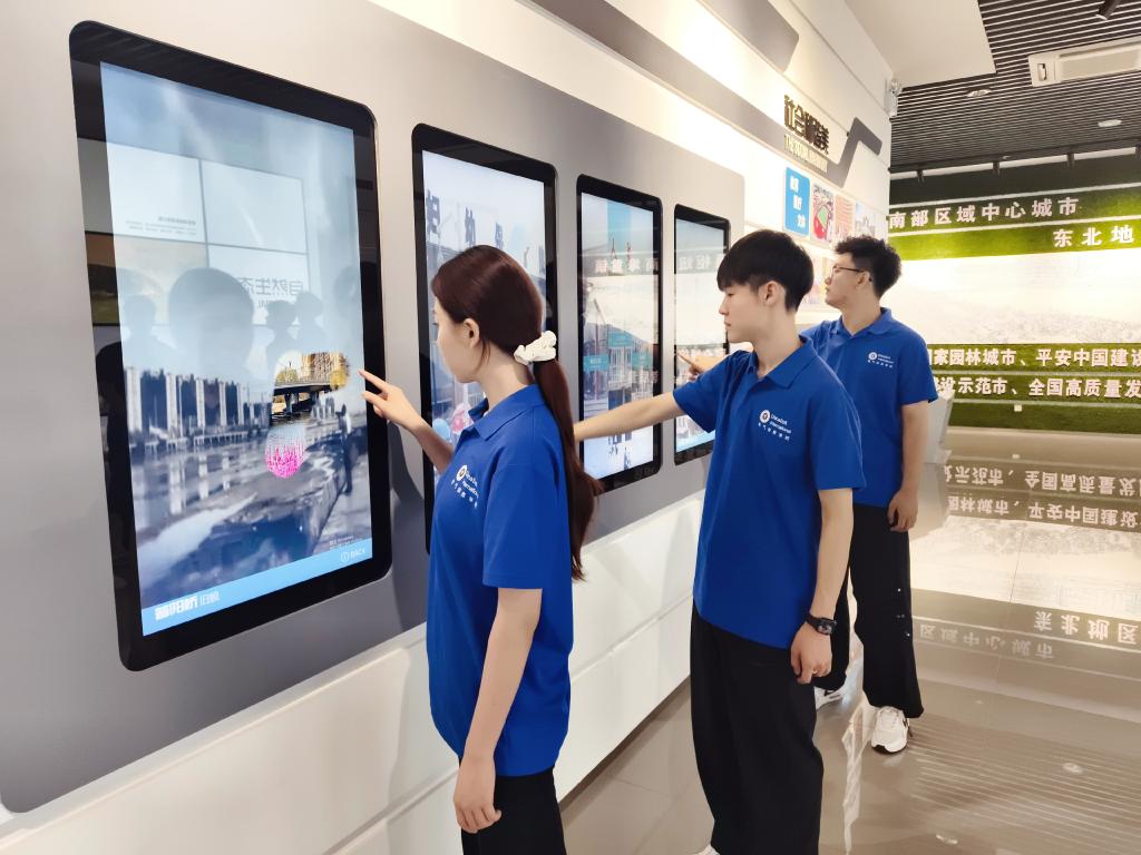 实践团成员们走进梅河口市城市规划展览馆,在巨大的沙盘模型前,仔细对比着新老城区的变化;站在电子互动屏旁,看着今昔对比的照片,不禁发出阵阵赞叹。通过全息影像展示,实践团成员们深入了解了“人民城市”的发展理念,切身感受到了东北老工业基地转型发展的生动实践。