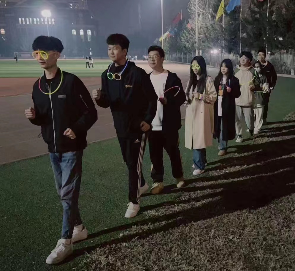 活动中,养成教育体育锻炼小组负责人为每一位参与夜跑的同学发放了荧光手环、荧光眼镜等物品,五彩缤纷的荧光棒随着摆动的手臂在田径场上挥舞闪耀,同学们在荧光中欢乐奔跑,为光华园注入了青春的活力,充分展现了当代大学生的青春风貌。