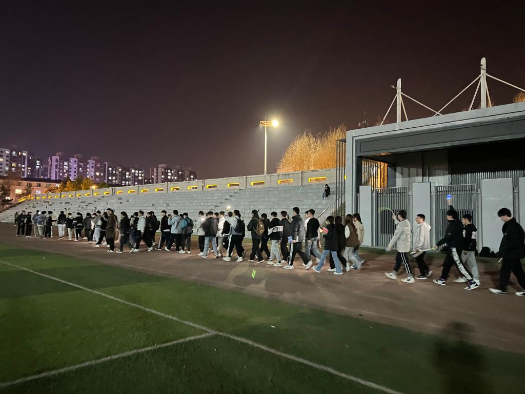 “1、2、3、4”口号声在操场上回荡,此次荧光夜跑主题活动不仅使同学们养成了体育锻炼的好习惯,而且也使同学们在活动中寻找到了快乐,发现了校园里的美丽风景,结交了新朋友,大家在夜晚并肩前行,共向未来。