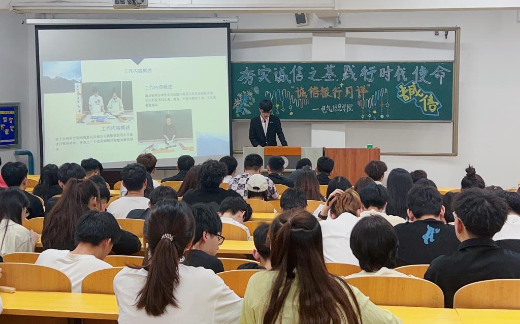 本次诚信银行月评活动的开展,积极响应了社会主义核心价值观诚信之风,形成了崇尚诚信、践行诚信的良好校园风尚。希望同学们能够在今后的学习、工作和生活中明确自身的职责与使命,争做诚信之人,彰显出青春底蕴,沉淀出优秀品质。