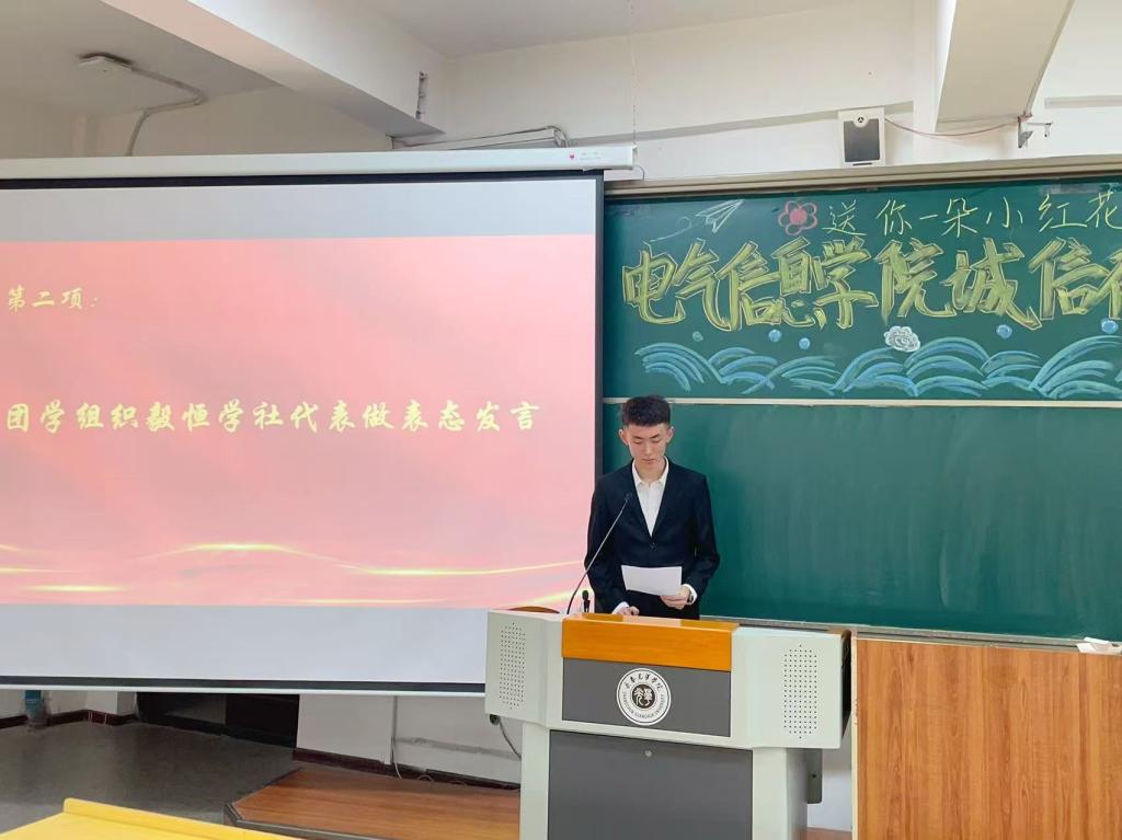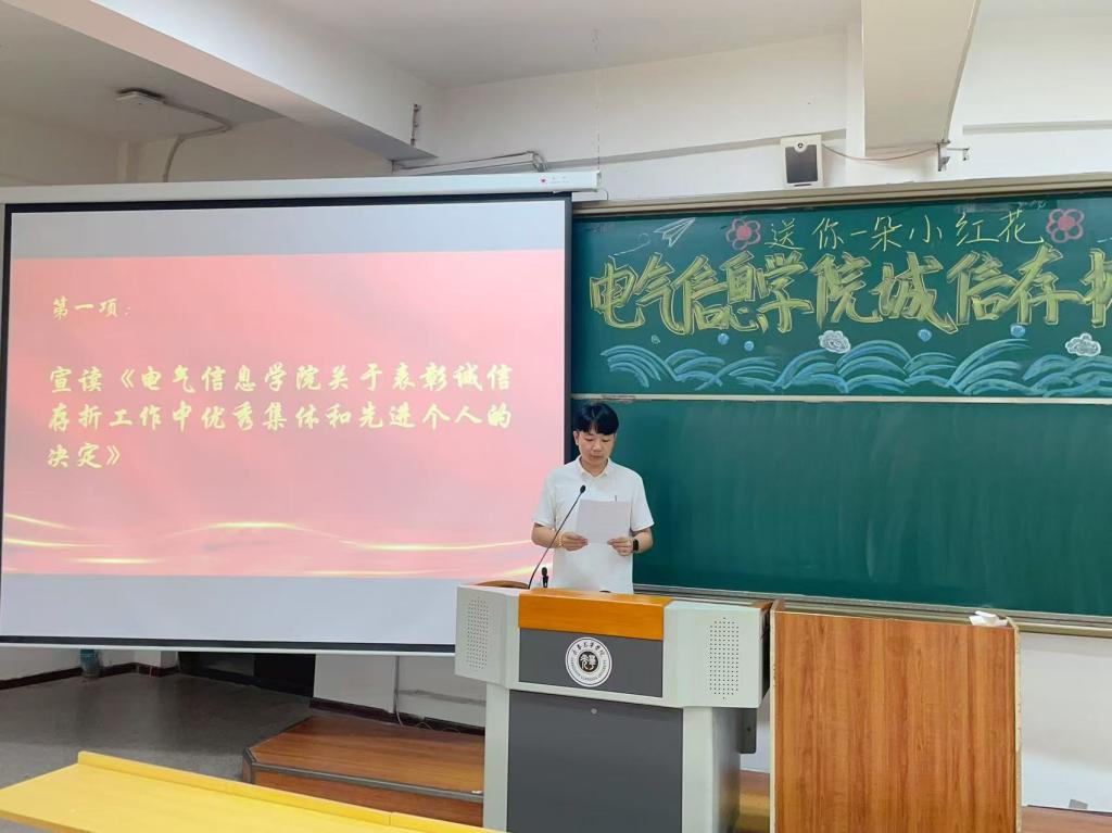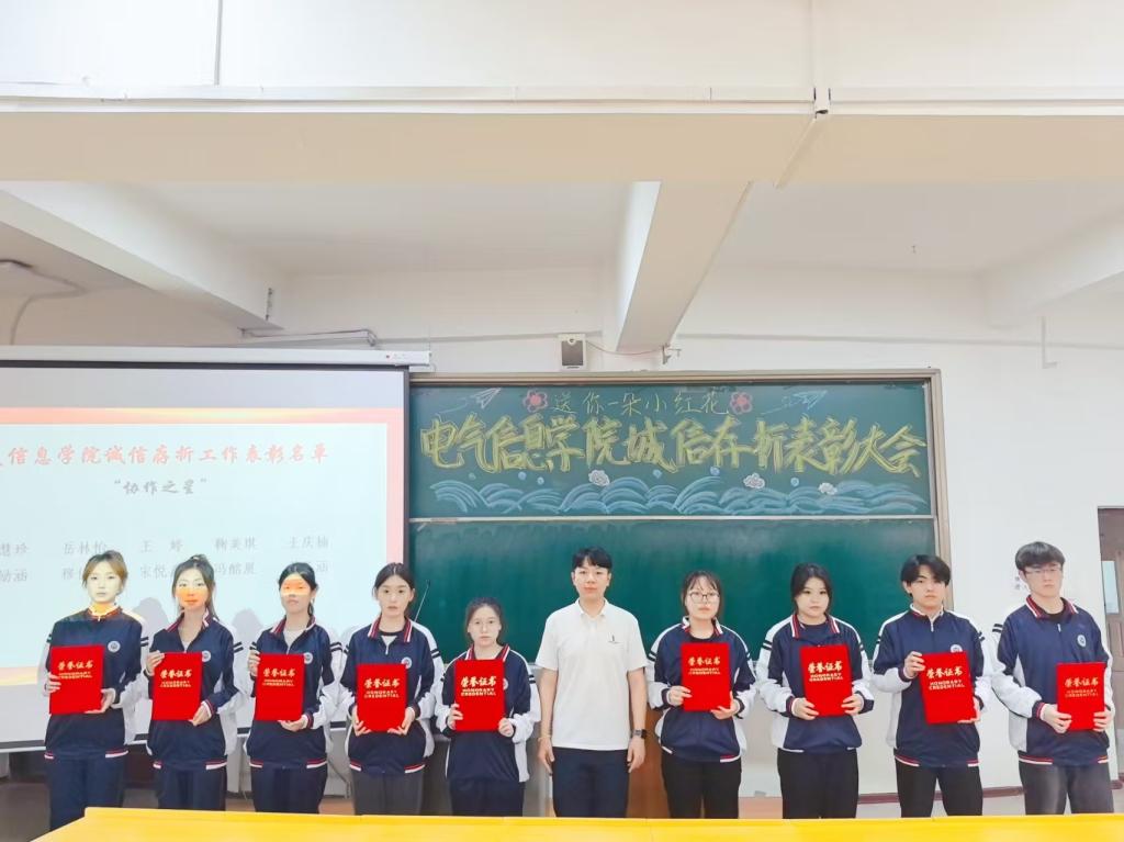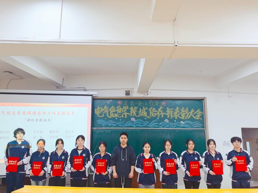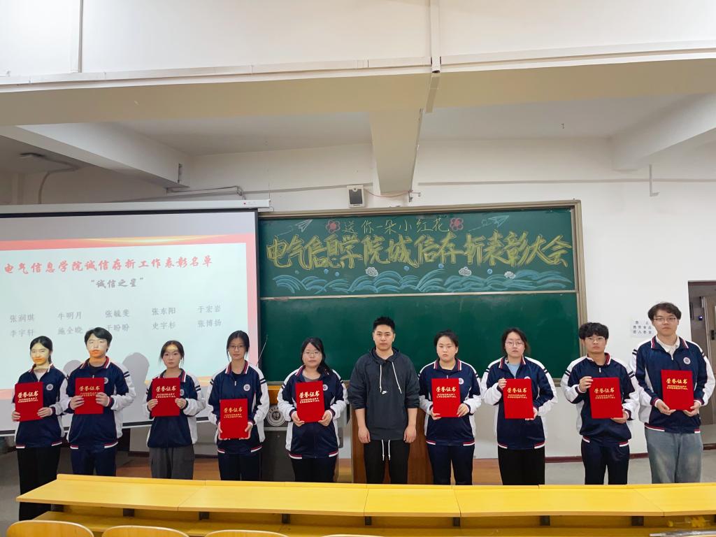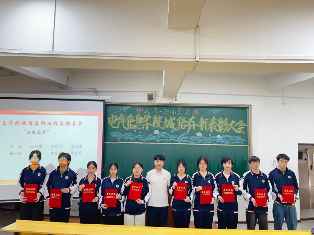 2025年6月27日,pg娱乐电子游戏官网入口召开“送你一朵小红花”诚信存折表彰大会。大会由pg娱乐电子游戏官网入口团总支书记曲相日主持,辅导员刘东波及2024级全体学生参加。本次表彰大会共设立“诚信之星”、“品德之星”、“协作之星”、“课外实践标兵”及“金诚班级”5项荣誉,40名优秀个人和5个先进集体获此殊荣。本次表彰大会,以“诚信存折”为载体,通过表彰先进典型、分享成长故事等形式,生动展现了诚信积累的丰硕成果,激发了青年学生的内生动力,有效促进了诚信价值从个人自觉向集体风尚的深度转化,使诚信真正融入了青年学生的日常学习和生活。