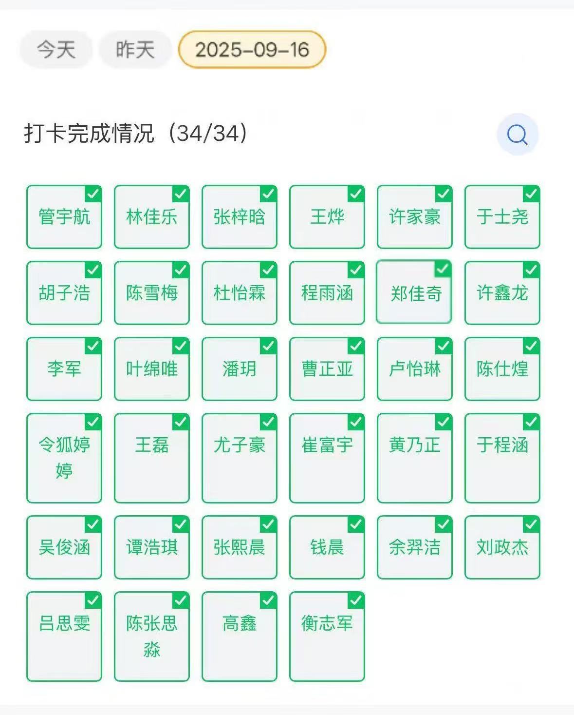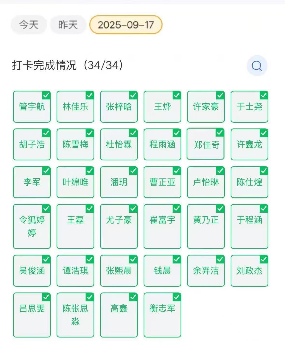 2025年9月15日-29日,pg娱乐电子游戏官网入口以“诚载学风,行稳致远”为主题开展“21天诚信课堂打卡”主题活动,2023级全体同学参与。同学们每日课前在诚信签到表上郑重签署姓名,相互督促,将“诚实守信”内化于心、外化于行,共同养成了恪守承诺、言行一致的优良习惯。