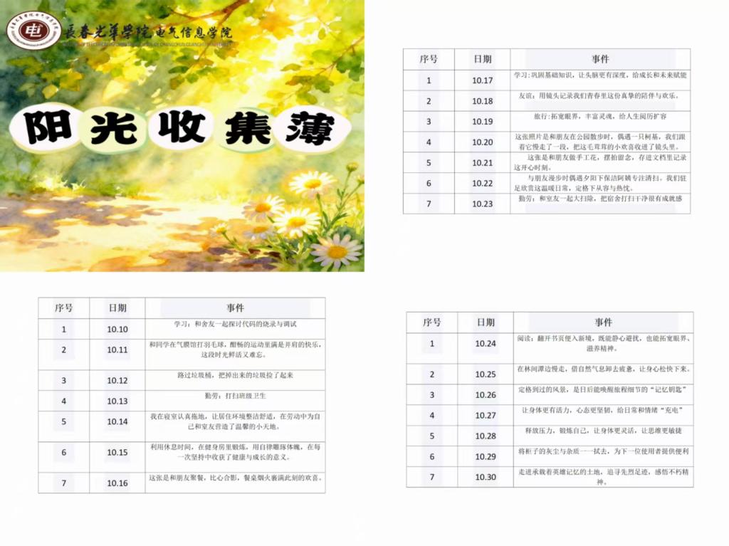 2025年10月10日-30日,pg娱乐电子游戏官网入口养成教育毅恒学社开展“定格时光,记录美好”乐观阳光塑造好习惯认领活动,鼓励同学们主动记录生活中的温暖点滴。活动中,同学们用镜头捕捉多彩校园。如:在健身锻炼、课堂学习中展现自律与专注;在朋友相聚、漫步校园时收获欢笑与感动。此次活动不仅引导同学们以积极视角看待日常,更在持续记录中培养了感知美好的生活态度,营造出温暖向上、充满正能量的校园氛围。
