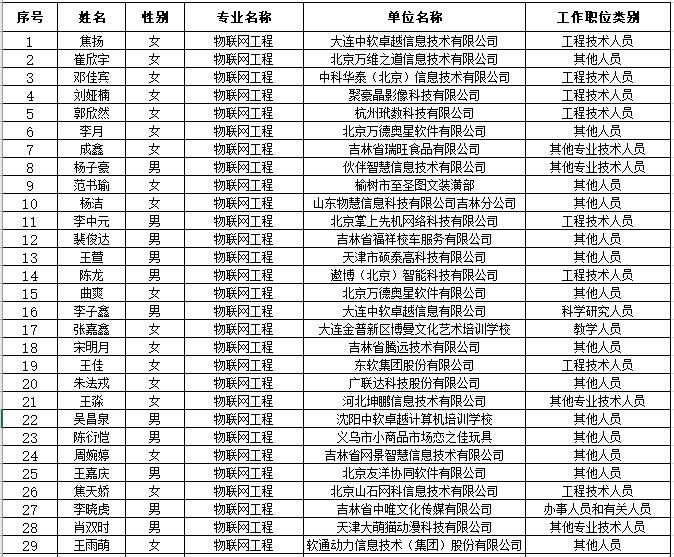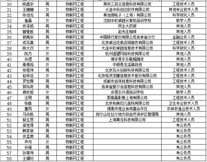 2021届中软集团校企合作物联网工程专业就业汇总表(2021年5月)