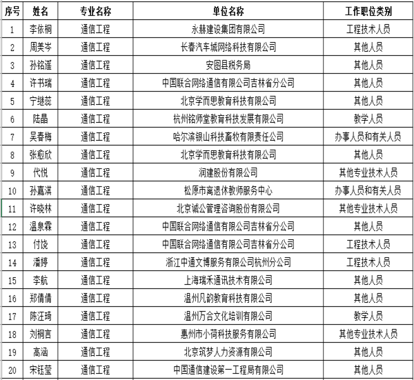 2020届中兴集团校企合作通信工程专业就业汇总表(2020年5月)
