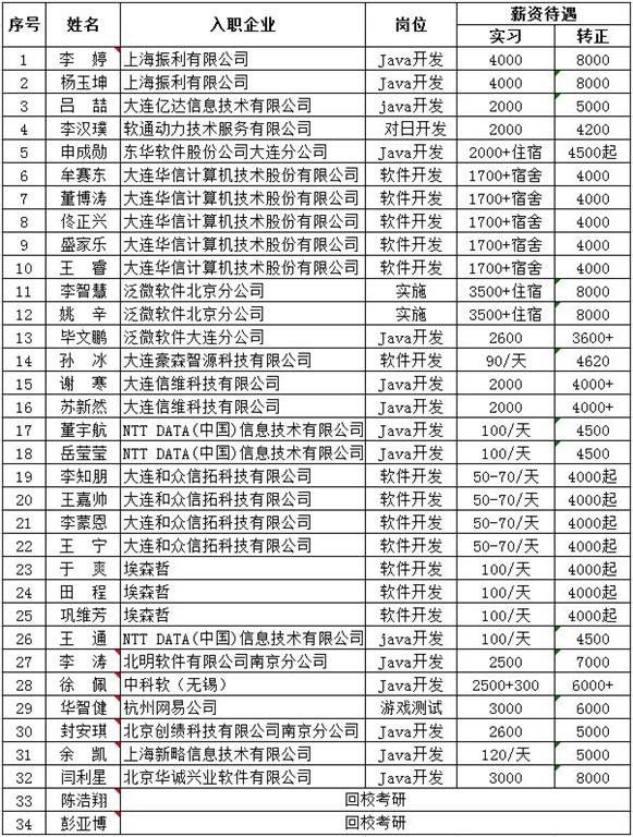 2019届中软集团校企合作计算机科学与技术专业就业汇总表(2019年5月)