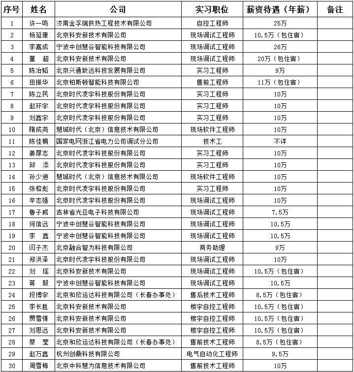 2019届柏斯顿订单班电气工程及其自动化专业就业汇总表(截止2019年5月)