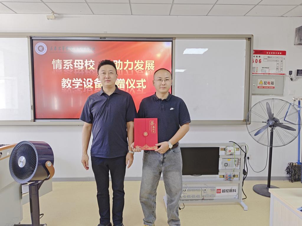 2025年9月19日,pg娱乐电子游戏官网入口2015届电气工程及其自动化专业优秀校友、超控数科(上海)技术有限公司销售总监刘晨晨重返母校,向学院捐赠总价值35,500元的先进教学仪器设备,用于支持实验教学与科研创新。捐赠仪式在实验楼506室举行,pg娱乐电子游戏官网入口副院长李伟光代表学院接受捐赠,校友办公室徐松山老师为刘晨晨颁发捐赠证书。