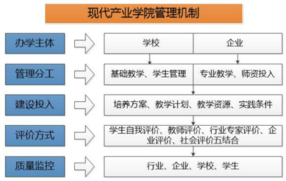 产业学院实行理事会领导下的院长负责制,成立由校企双方代表组成的理事会,负责对产业学院专业设置和专业建设、培养方案制订、课程建设、“双师双能型”教师队伍建设、校内外实验实习实训基地建设等重大问题进行审议、决策、检查、指导、咨询、监督和协调。具体管理机制如图2所示。