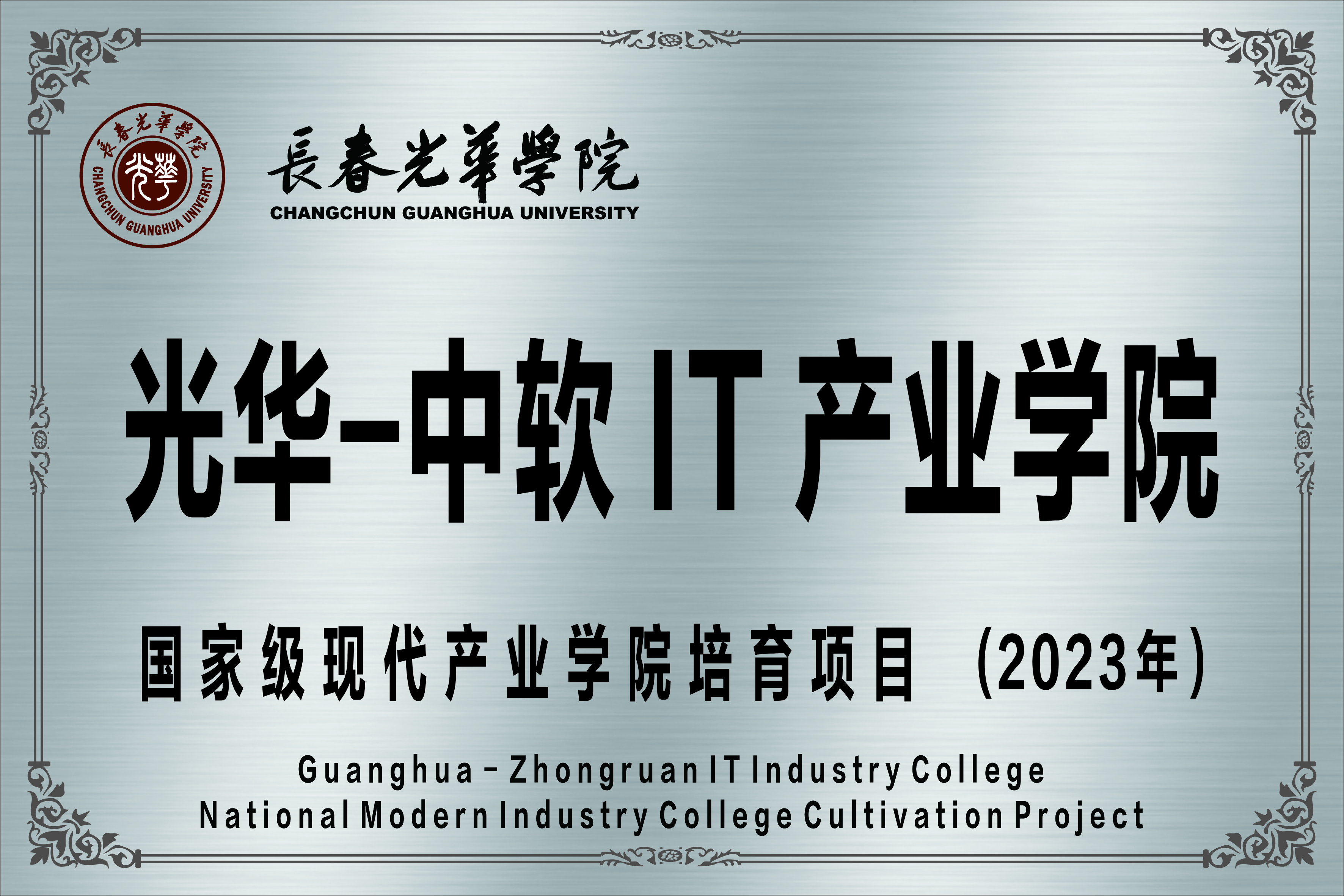 在4年良好合作的基础上,为了进一步深化产教融合、推进人才培养模式改革,相关专业负责人和教师在长春、北京、大连等合作企业就产业需求、人才培养、科研服务等方面进行调研,2016年3月邀请校企负责人、专家、相关管理部门就产业学院对接产业、专业建设、培养模式、产学研服务与学生成长路径等方面进行论证。2016年5月“光华—中软IT产业学院”正式挂牌成立,办学场所设在长春光华学院。2021年获批吉林省首批示范性现代产业学院,2023年获批国家级现代产业学院培训项目。