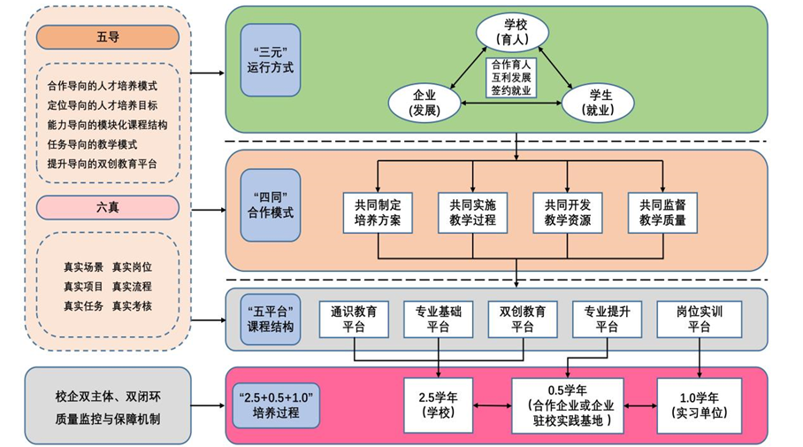三元:学校、企业、学生三方运行机制;
